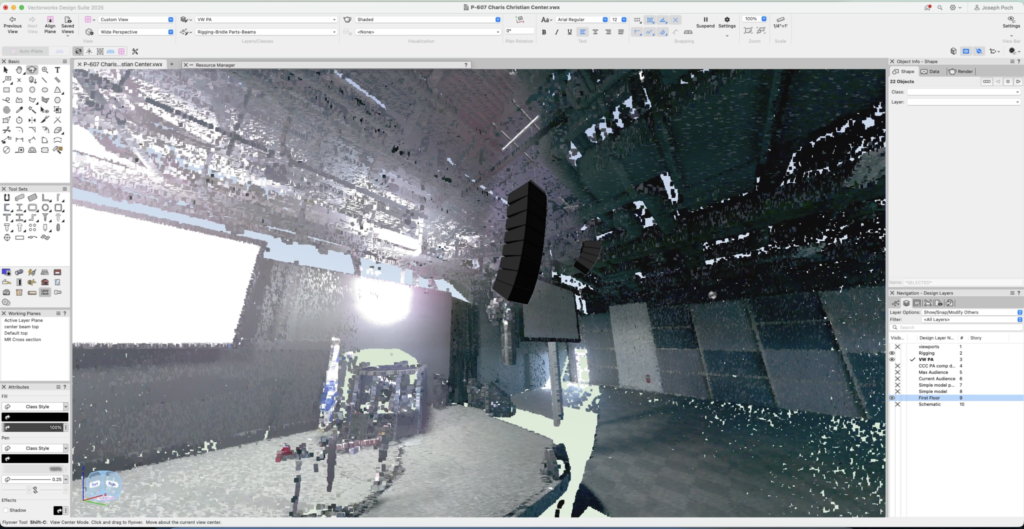 At Lux AVL Inc., our approach to system design begins with precision—and nothing embodies that more than our complimentary 3D LiDAR laser scanning service for projects across Colorado. By capturing your space with industry-leading scanning technology accurate to within 1/8 of an inch, we eliminate guesswork and replace it with data-driven clarity. This process allows our engineering team to convert your environment into detailed, scalable PDF documentation and fully realized 3D models, forming the foundation for truly Laser Accurate Planning. Using advanced design platforms like Vectorworks, we develop multiple system renderings tailored to your unique needs—evaluating everything from loudspeaker coverage and acoustic behavior to lighting distribution and rigging feasibility. The result is a “Zero Surprise Design” process that minimizes variables, reduces errors, and ensures every element—from stinger lengths to speaker calibration—is engineered with absolute confidence.