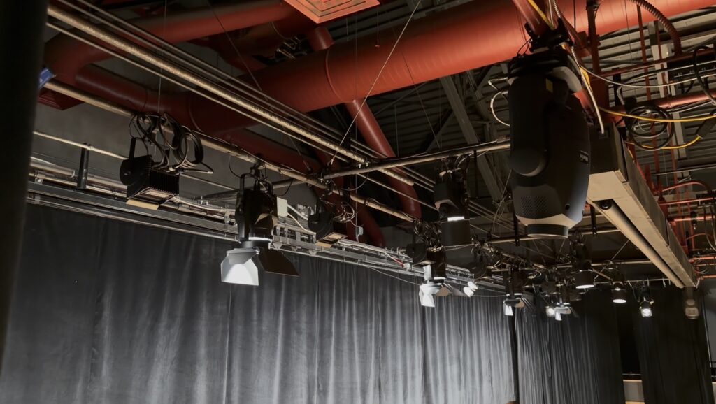 Rigging was a critical aspect of this installation, executed with precision and safety as the top priority. Our team utilized specialized iWeiss rigging hardware, including cable wenches for the Front of House static light pipe and the downstage edge static light pipe. These rigging components allowed for secure, controlled positioning and smooth adjustment of the lighting pipes, ensuring both operational flexibility and structural integrity. Throughout the venue, iWeiss acoustic curtains were also installed using carefully planned rigging techniques to enhance the room’s acoustic performance while integrating cleanly with the overall system.